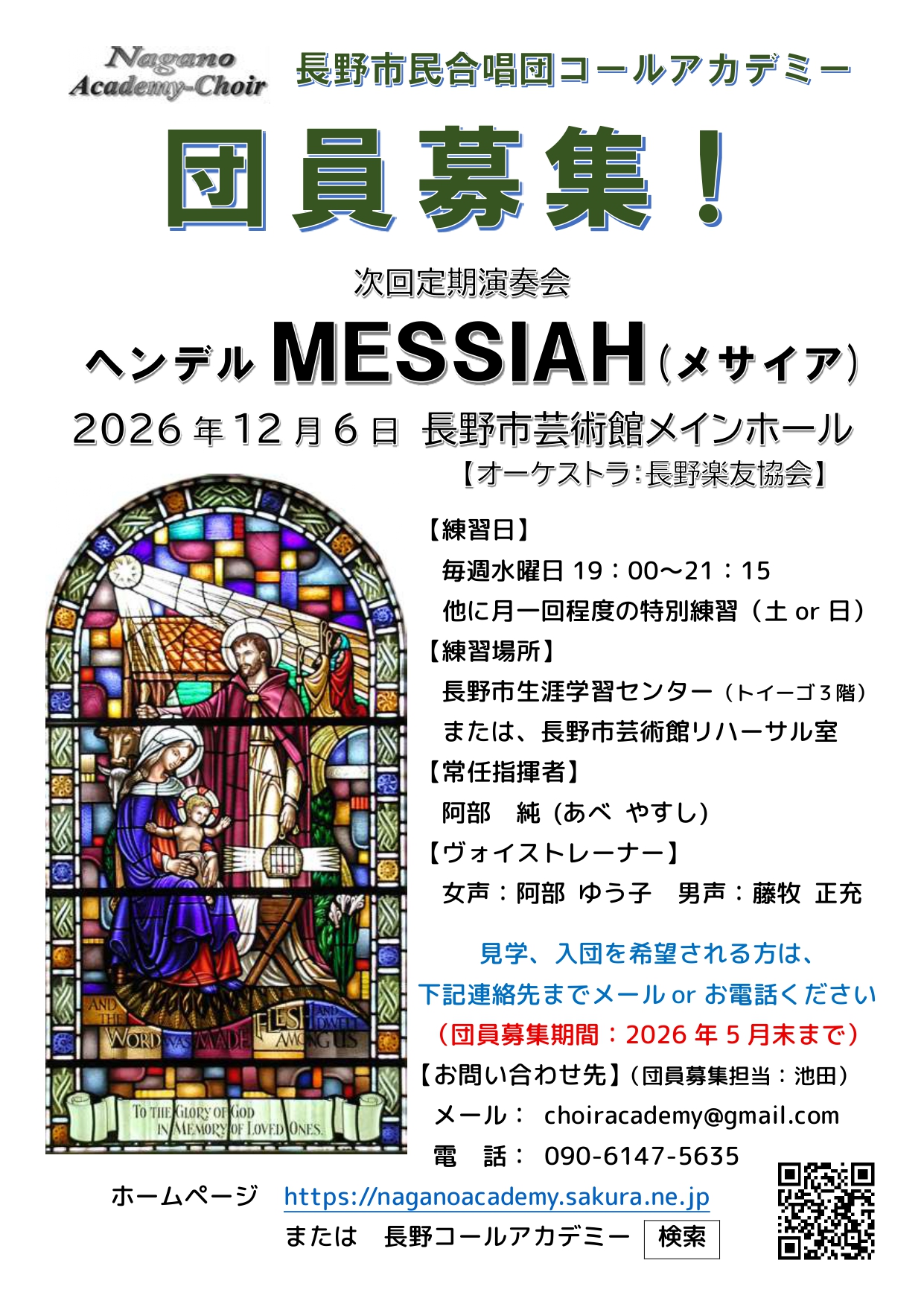 をご覧ください。第53回定期演奏会で演奏予定のメサイアの練習は、11月26日から始まります。